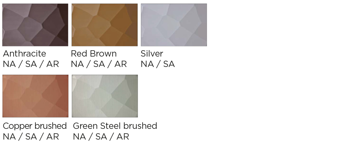 Geometrías definidas y planos angulares que fragmentan la luz y aportan ritmo a la superficie. Prism traduce la precisión geométrica en un lenguaje visual sólido y contemporáneo.